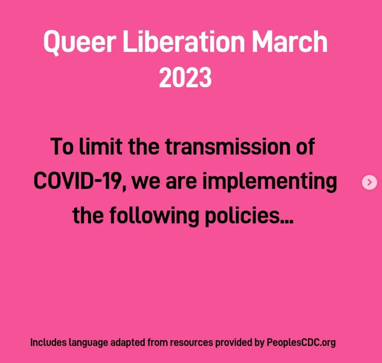 For safety of others, to be clear. We need for every queer who wants to participate to be able to do so. Right now the immuno-compromised (Long-covid) queers are the most at risk of mass events like the QLM. When all of us mask, more of us can participate.. it’s that simple.