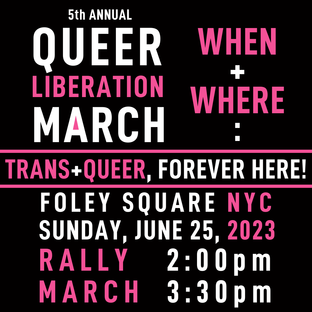 Latest links and information for the Queer Liberation March, 2023… it’s our fifth year marching — with no cops, no corps, and no politicians attempting to usurp our message or our power… We are still under attach, moreso than in many recent years.